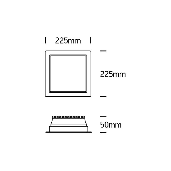 MaßeL= 225mm x B= 225mm x H= 50mm, DA= 205x205mm, ET= 80mm