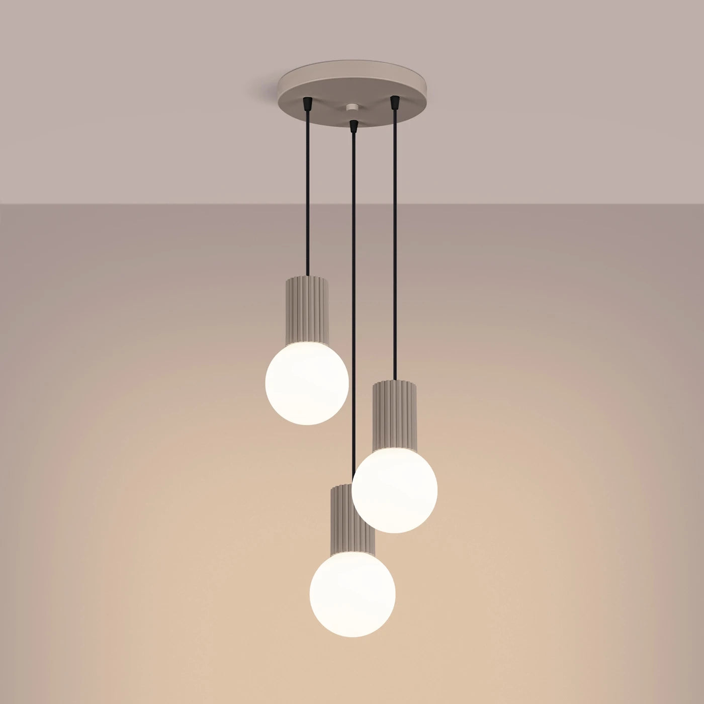 Die HALO Pendelleuchte (3-flammig) vereint architektonische Präzision mit einer sanften Lichtstimmung. Durch die Anordnung von drei markanten, geriffelten Leuchtkörpern ist sie die ideale Wahl, um Esstische, Kücheninseln oder Wohnbereiche stilvoll und gleichmäßig auszuleuchten.